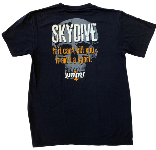 It says, “SKYDIVE. If it can’t kill you it ain’t a sport.”